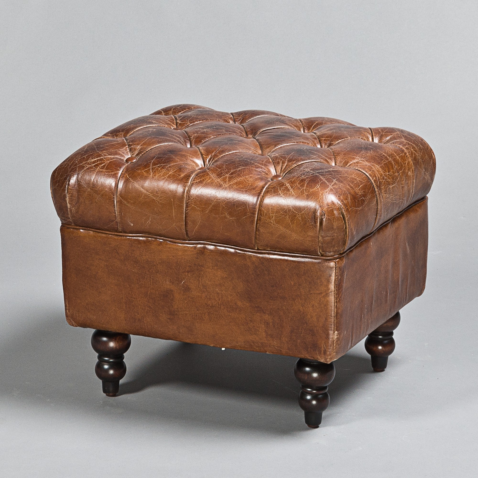 Hocker/Pouff, L 55 x B 48 x H 43 cm, Leder, Braun