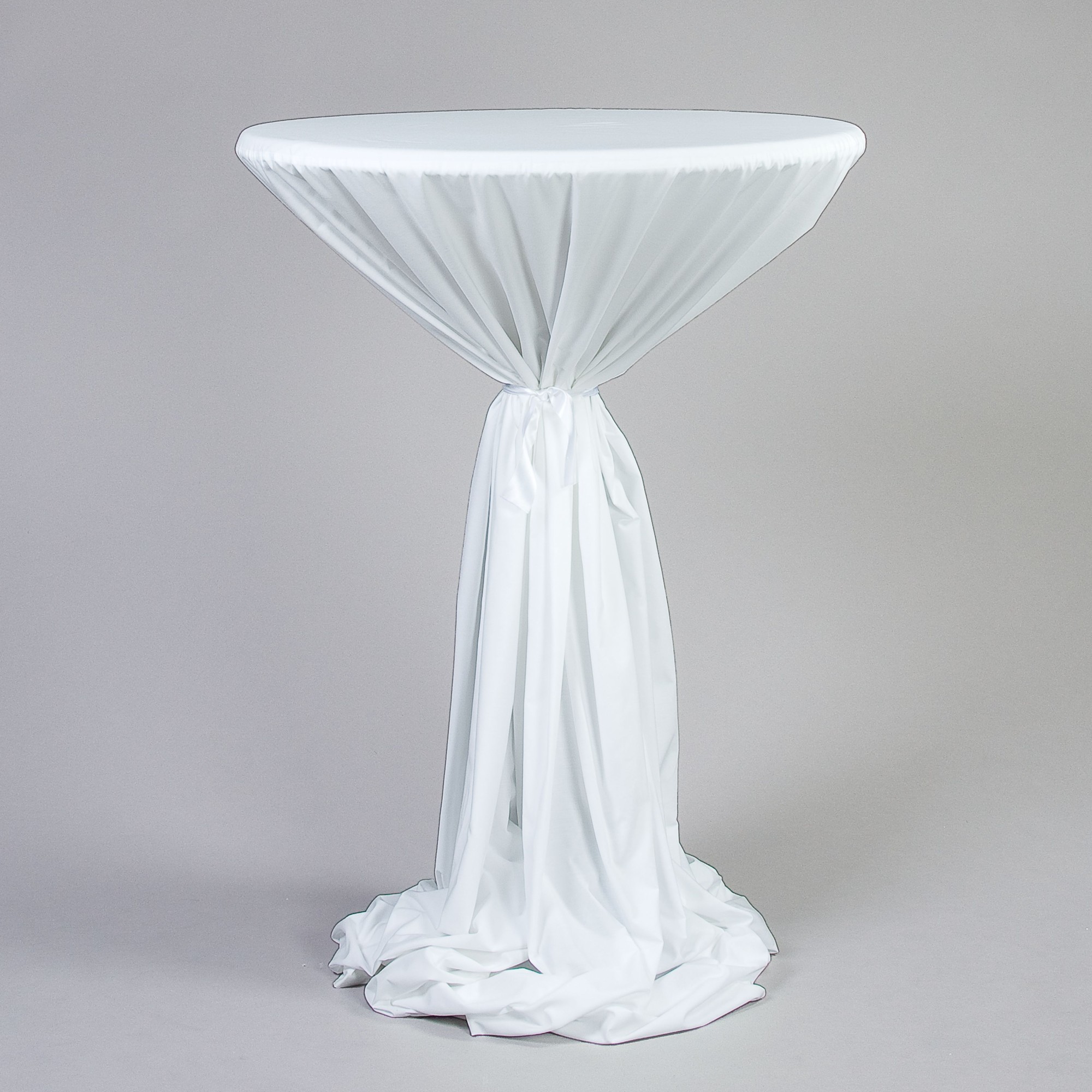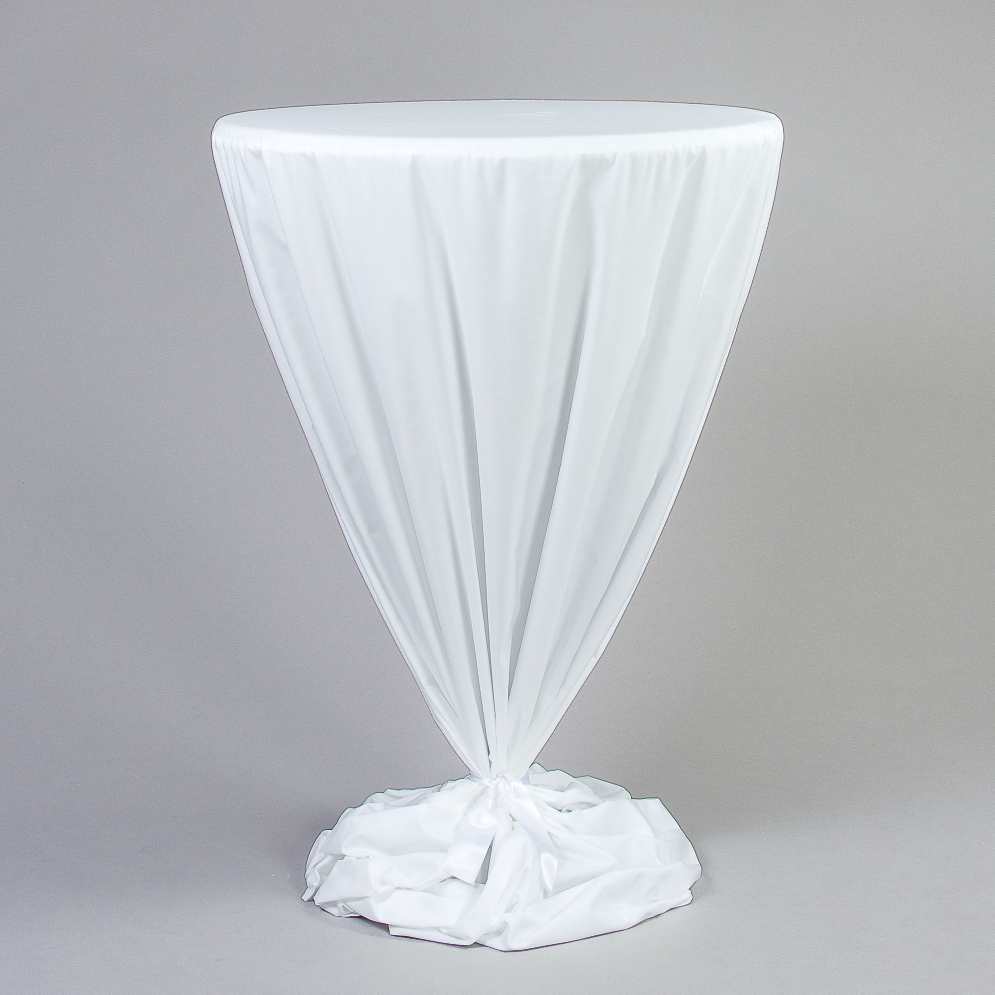 Husse Stehtisch D 80 cm, NTCS bodenlang, Weiss mit eingesetztem Deckel D 80 cm permanent flammenhemmende Ausrüstung DIN 4102 B1 Zubehör optional: Molton, Satinband zum Binden