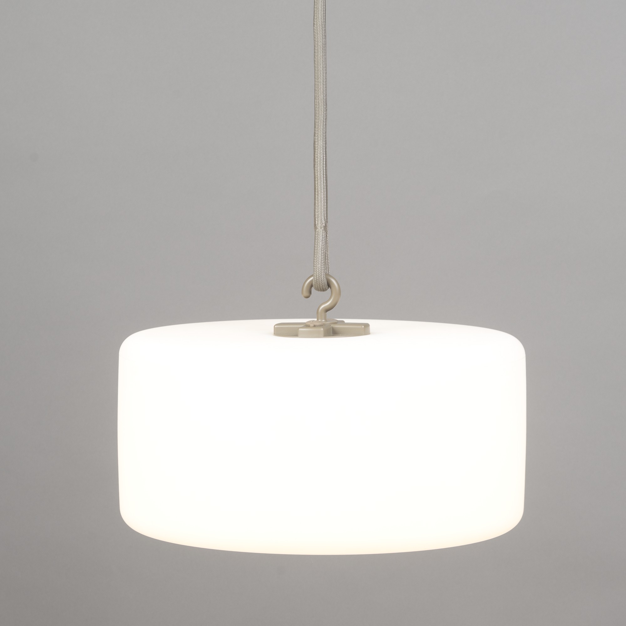 Akku-Hänge-/Stehleuchte, Fatboy THEIRRY LE SWINGER, D 40 x H 19 cm, PE, Weiss, Schnur L 320 cm, Taupe/Steckfuss 2-tlg, L 75/150 cm, Holz Zubehör inklusive: USB-Ladekabel